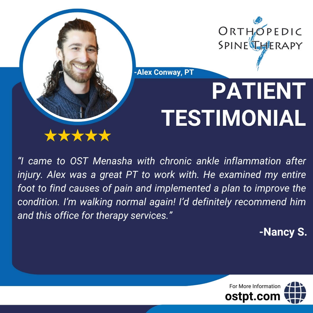 According to Alex, physical therapy is “not about quick fixes, medications or surgeries. We have a unique relationship with our patients, take the time to listen to your difficulties in your life, develop a relationship that fosters teamwork, and address impairments that are keeping you from what you want to do in life. It is this relationship that promotes motivation, goal setting, and empowerment to take control back into your life. We shouldn’t normalize pain or loss of function, because there is always something we can do to help improve your life.” Alex started with OST in November of 2022. Originally from the Chicago area, he lived in Minocqua, and he has now relocated to the Fox Valley area.