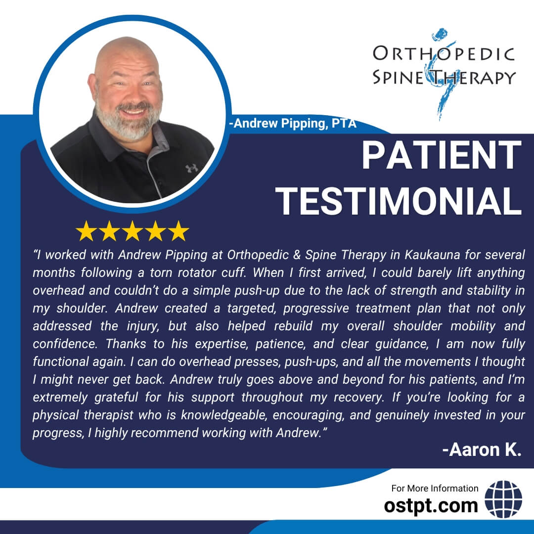 Andrew Pipping brings a unique blend of professional experience and personal insight to the world of physical therapy. A certified personal trainer through NASM, an active member of the APTA, and trained in Craniosacral Therapy, Andrew’s path to patient care has been anything but conventional — and that’s exactly what makes his approach so impactful.