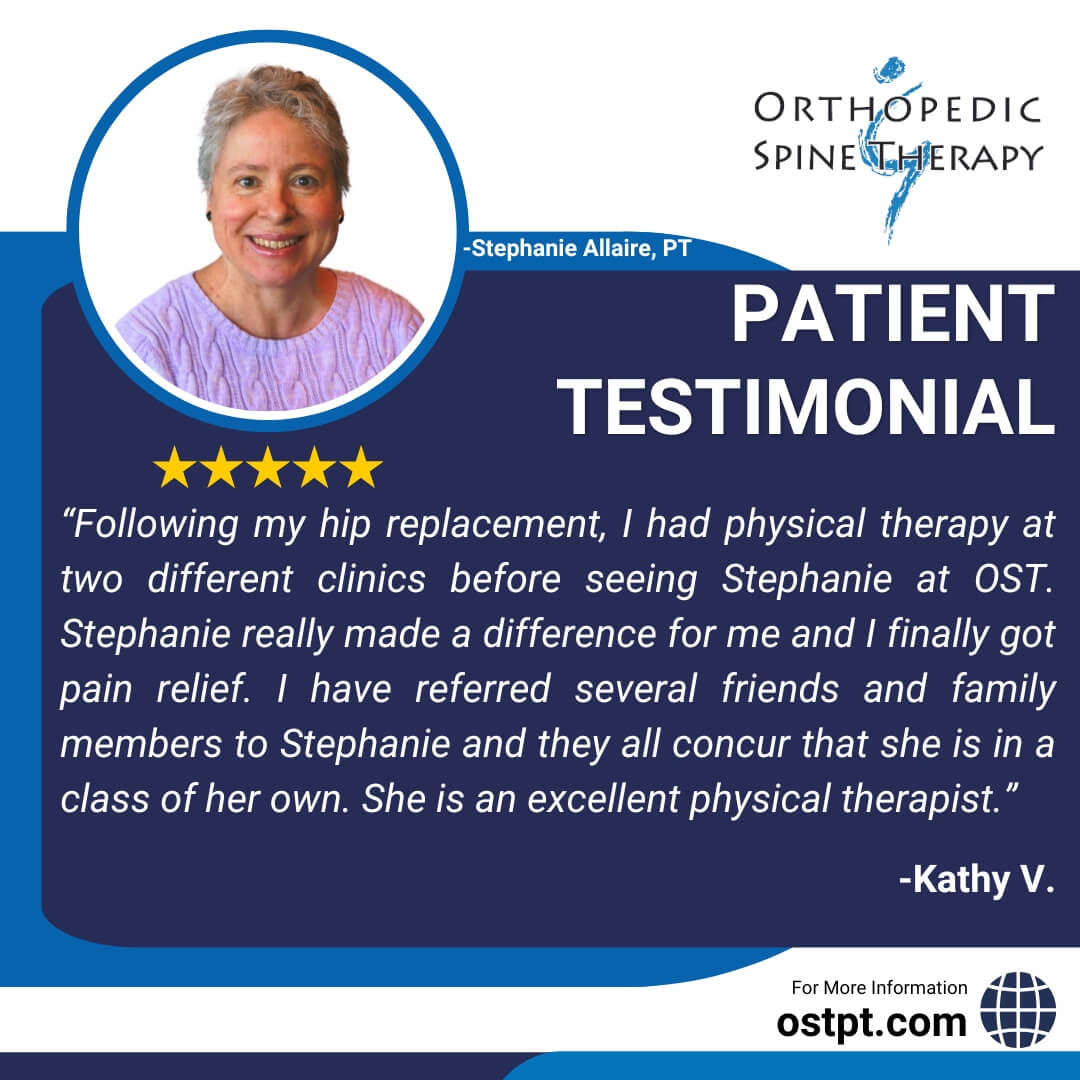 She says that the most rewarding part of her job is hearing patients tell her about the positive changes they experience during treatment including reducing or eliminating the use of pain medication, returning to work, sleeping without pain, being able to return to exercise activities, and being able to complete their normal home and social activities with less pain or limitation.